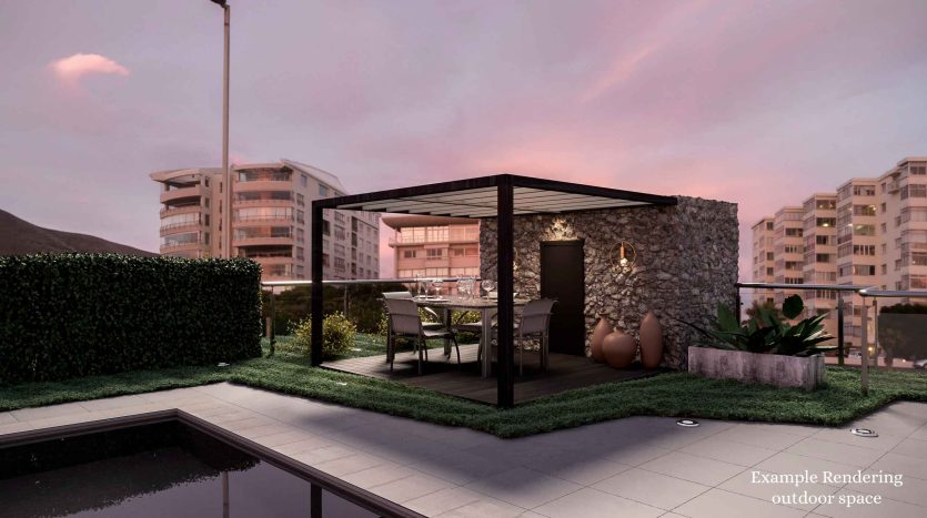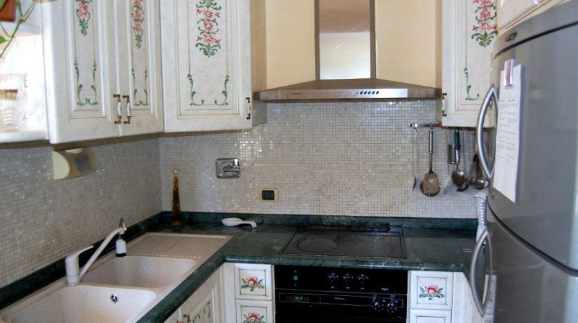 L’appartamento è composto da soggiorno, cucina abitabile, disimpegno notte, 2 camere e 2 bagni. Completano la proprietà una cucina esterna, un ripostiglio, un terrazzo con possibilità di realizzare una piscina privata e un ampio giardino di oltre 180 mq. Possibilità di realizzare una piscina privata.