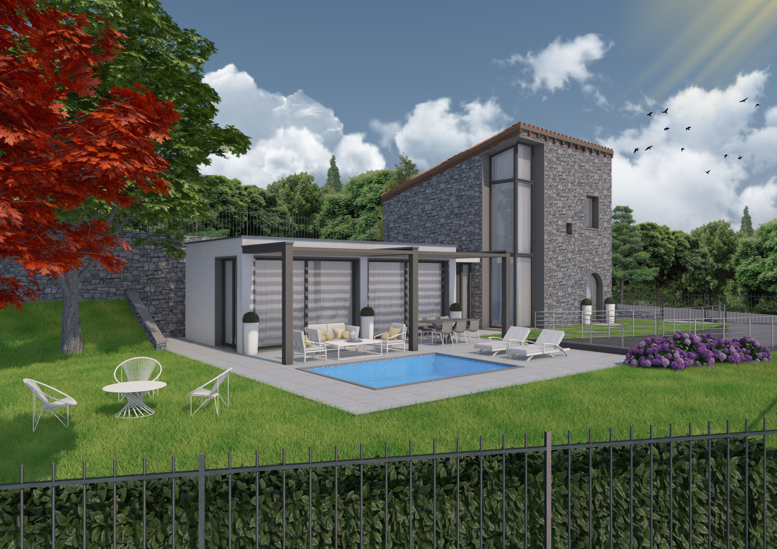 - Grande porticato affacciato sulla piscina e sul giardino privato